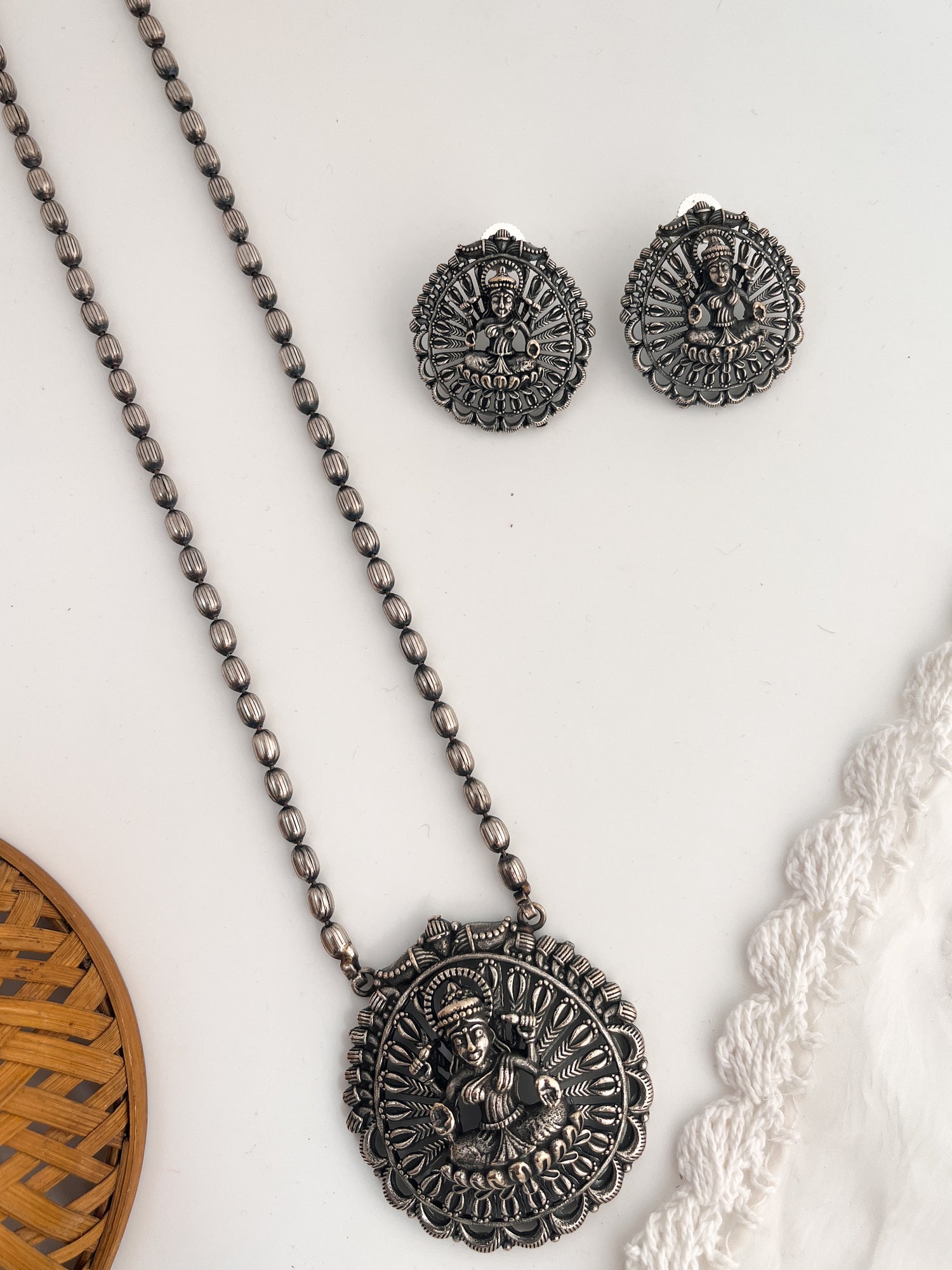 Durga - Das Hath Durga Silver Oxidised Black Polish Long Neckpiece