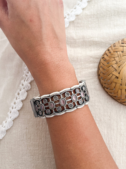 Adhika - Silver Oxidised Pink Stone And Moti Kada