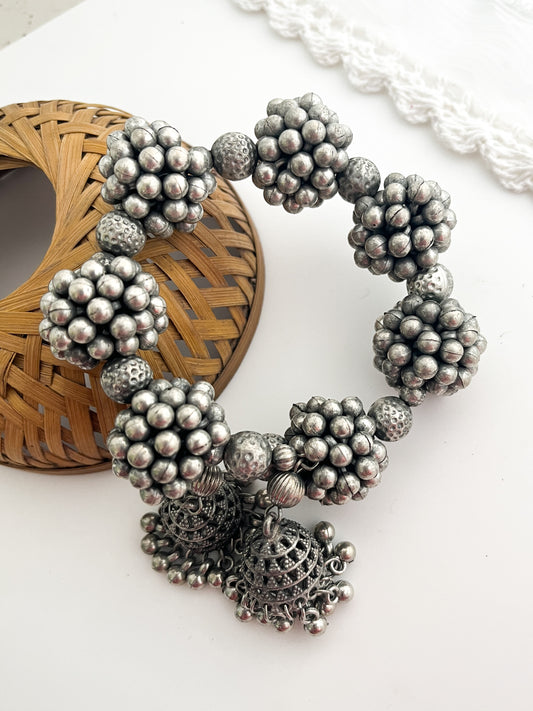 Gajra- Silver Polish Black Oxidised Adjustable Bracelet Cum Gajra