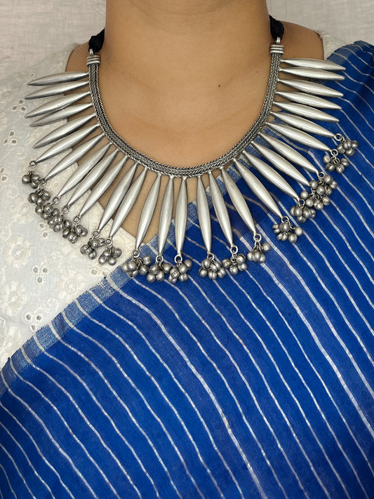 VANIE-Silver With Blue Stone Choker Necklace Set