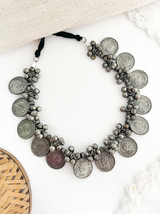 Hoor-Black Polish Tribal Coin Long-Short Neckpiece