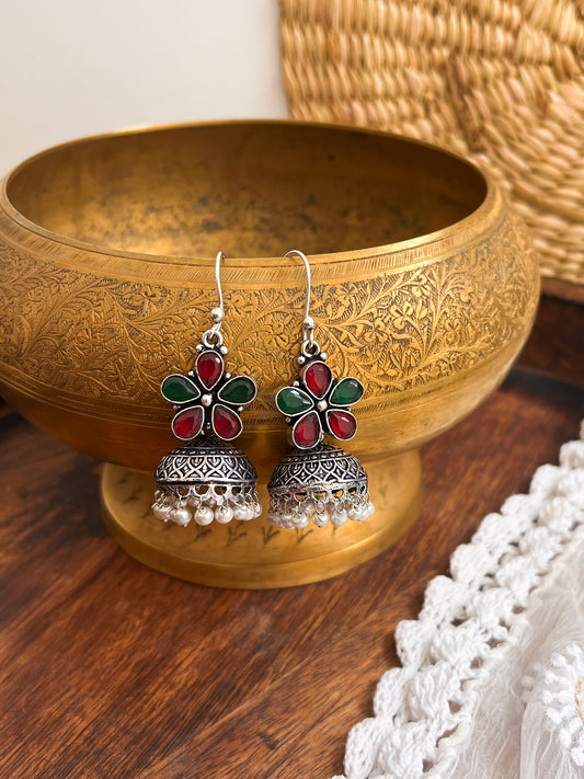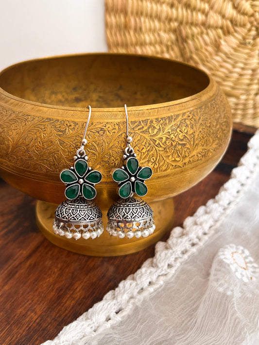 ROZANA- German Silver Studded Jhumka- Green