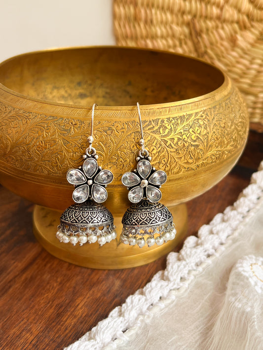 ROZANA- German Silver Studded Jhumka- White