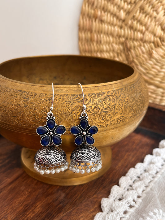 ROZANA- German Silver Studded Jhumka-Blue