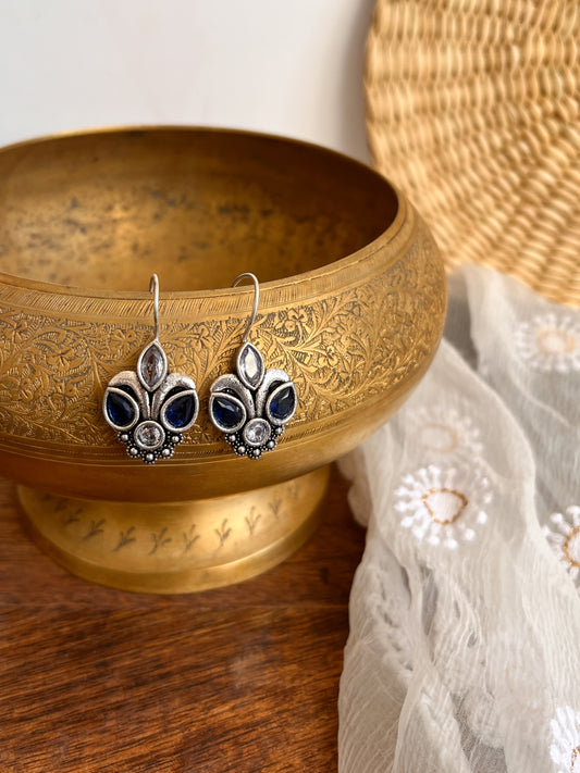 PIHU- German Silver Magenta Blue Stone Earrings