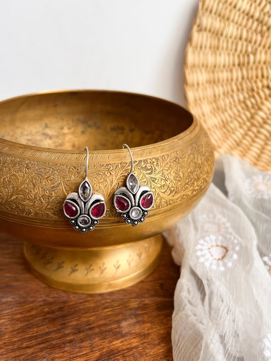 Pihu - German Silver Magenta Stone Earrings