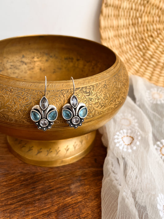 ROZANA- German Silver Studded Jhumka- Blue