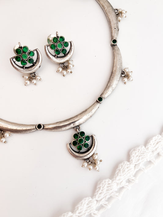 MADHURI - German Silver Hasli Necklace Green