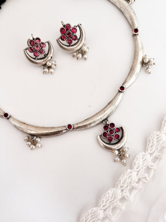 MADHURI - German Silver Hasli Necklace Magenta