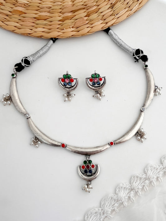 Tarabai Silver Oxidized Hasli