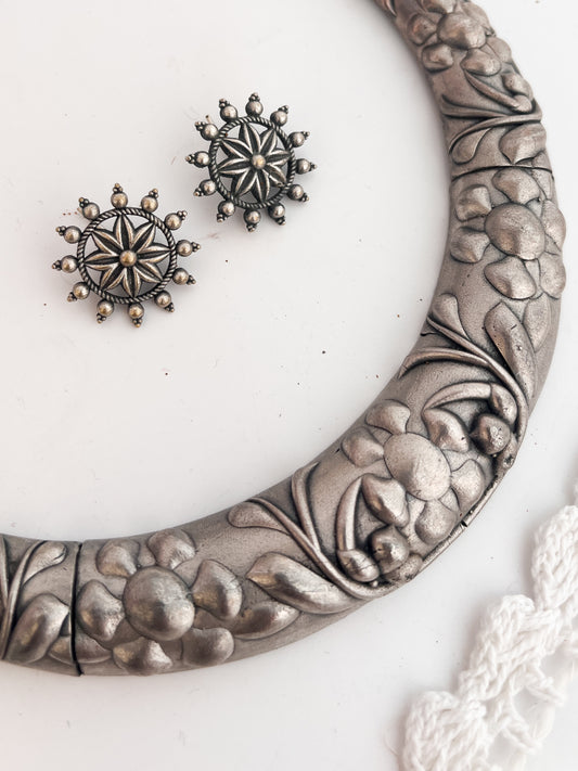 MAYURI - German Silver Hasli With Stud Earrings