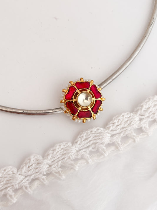 MOUSAMI - German Silver Hasli With Kundan Flower Pendant