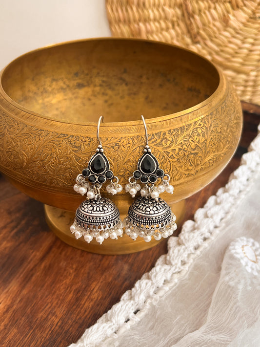 MEERA- German Silver Moti Jhumka