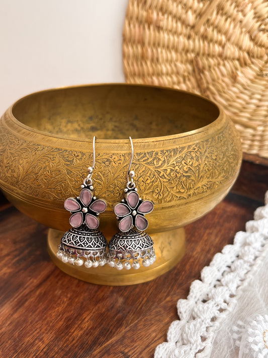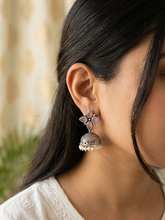 Rozana - German Silver Stud Jhumka Pink