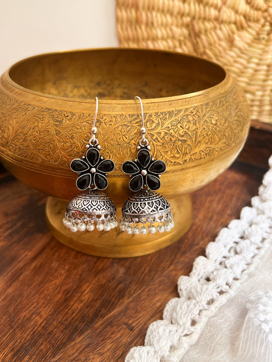 Rozana - German Silver Stud Jhumka Black