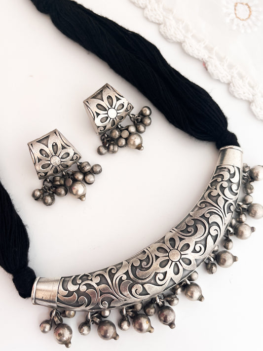 GEET- German Silver Ghungroo Neckpiece