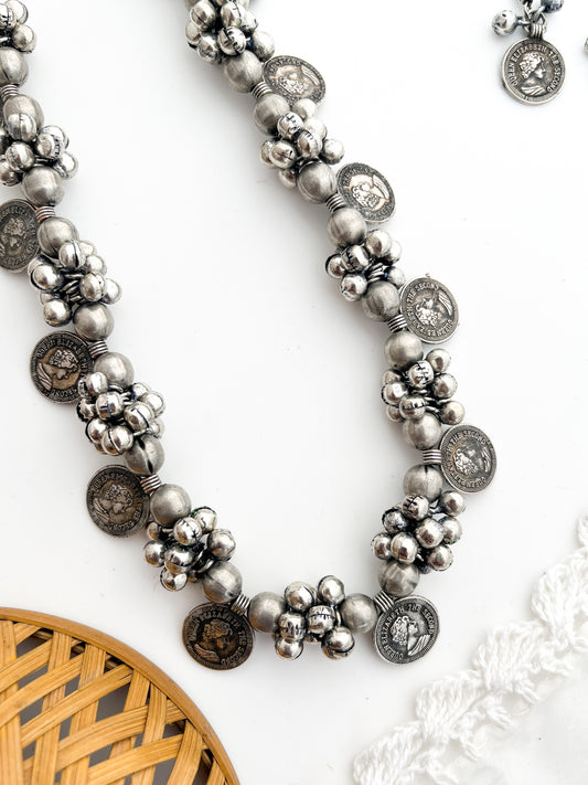 Dwani - Silver Oxidized Coins Long Neckpiece