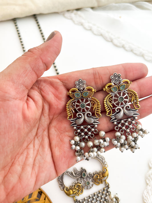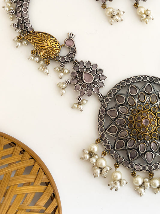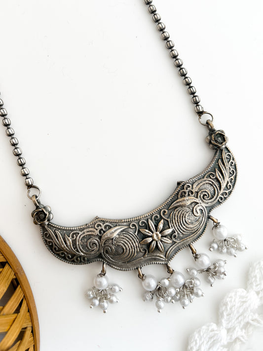 Arohini - Silver Oxidised White pendent Dual Tone ong NeckPiece