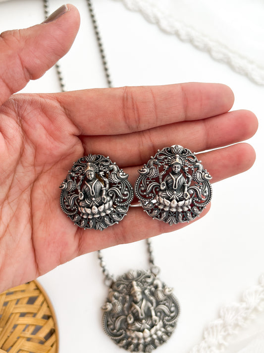 Lalita - Silver Oxidized Durga Long Neckpiece